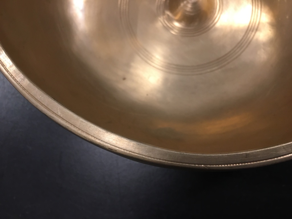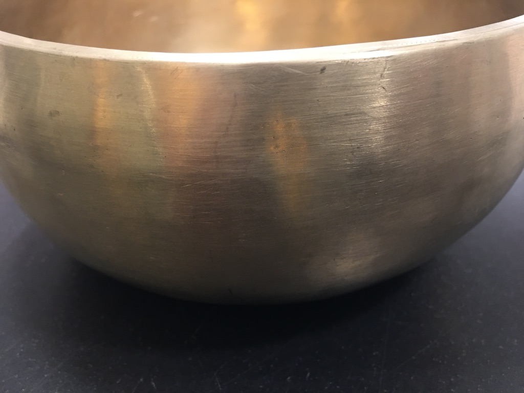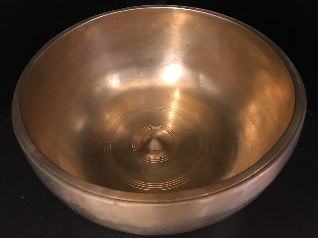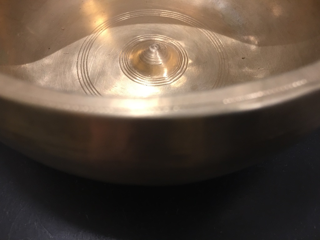 Deze Lingam of Borang klankschaal is heel herkenbaar aan de specifieke punt in het midden van de bodem.