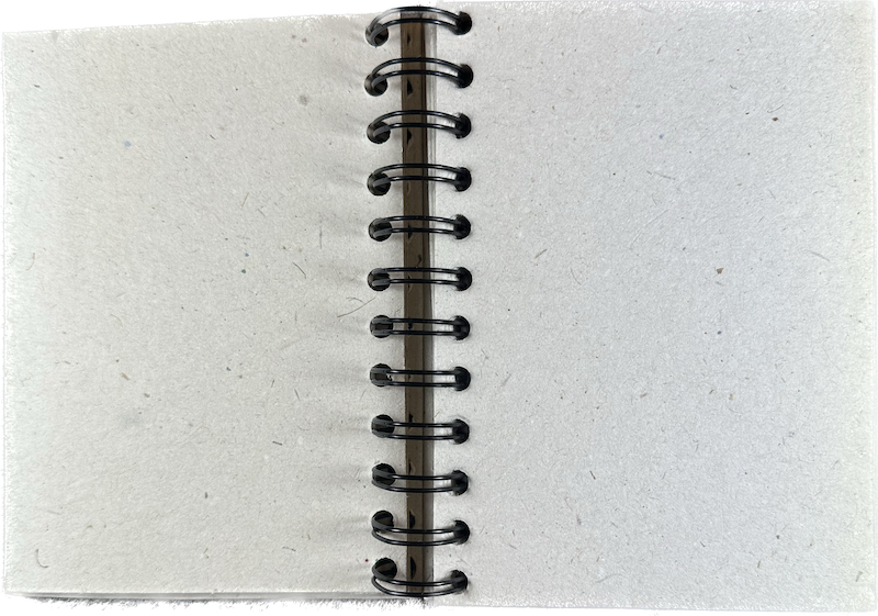 Er zitten ongeveer 50 bladen in een A6 notitieboekje en voorzien van een ringband.