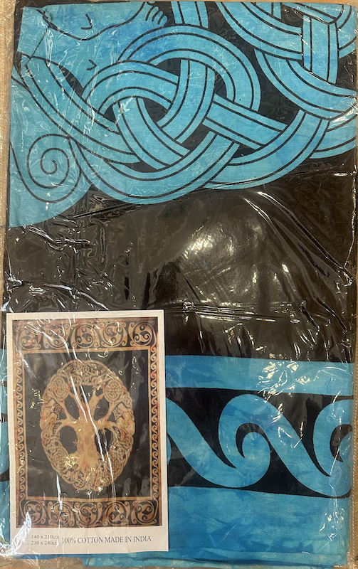 100% katoen wandkleed of bedsprei batik geverfd met de levensboom in de kleur blauw.