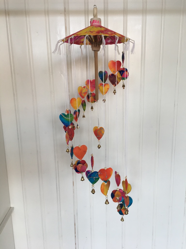 De balinese parasol mobile zijn er met hartjes, engeltjes, (vredes-)duiven en kerstmannen.