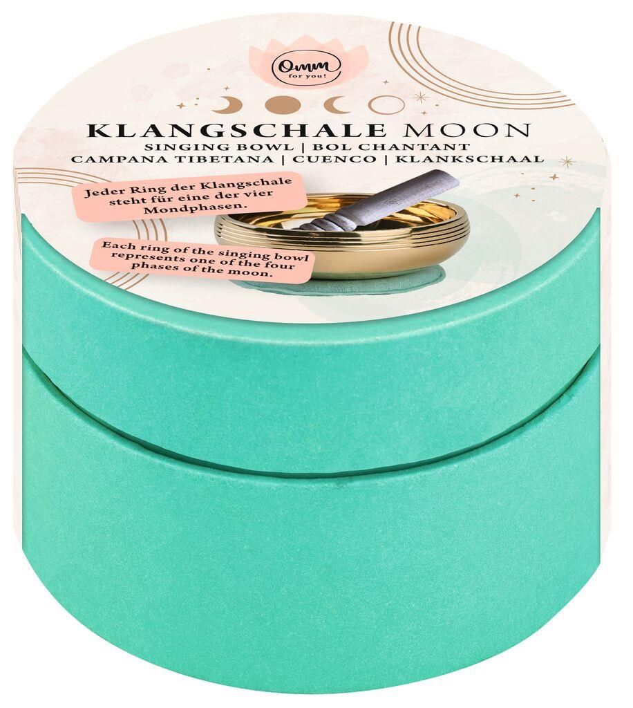 Metalen klankschaal met houten klopper op een zacht kussentje, in een mooie geschenkbox.