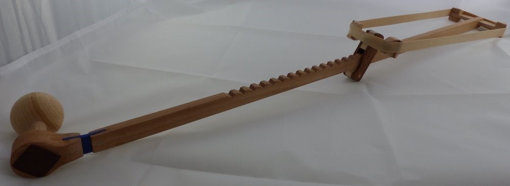 Dit model Snorrebot is een moderne bewerking van de traditionele Aboriginal bullroarer. De boog is gemaakt van een lang stuk hout. Door de Snorrebot in de lucht te draaien, ontstaat er luchtwervelingen die het elastiek in beweging brengen zodat er een zoemend geluid ontstaat. Doordat de spanning op het elastiek bij deze snorrebot verstelbaar is, kun je verschillende klankhoogtes laten horen.