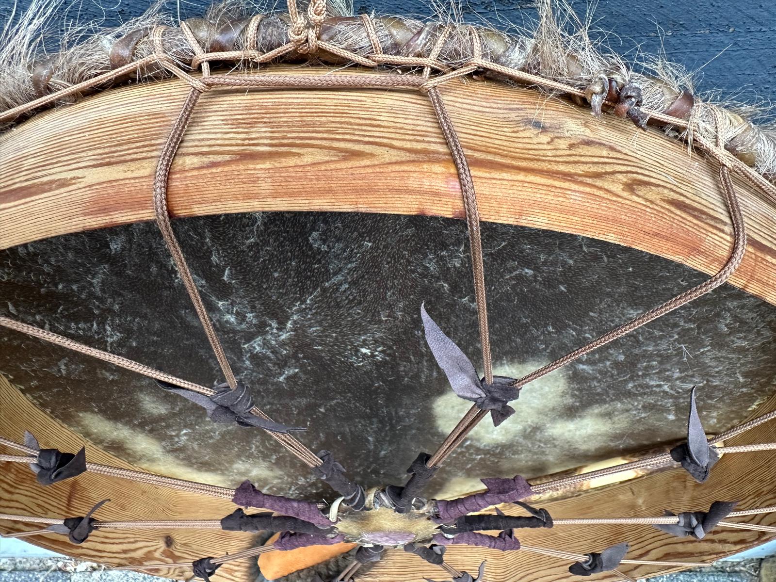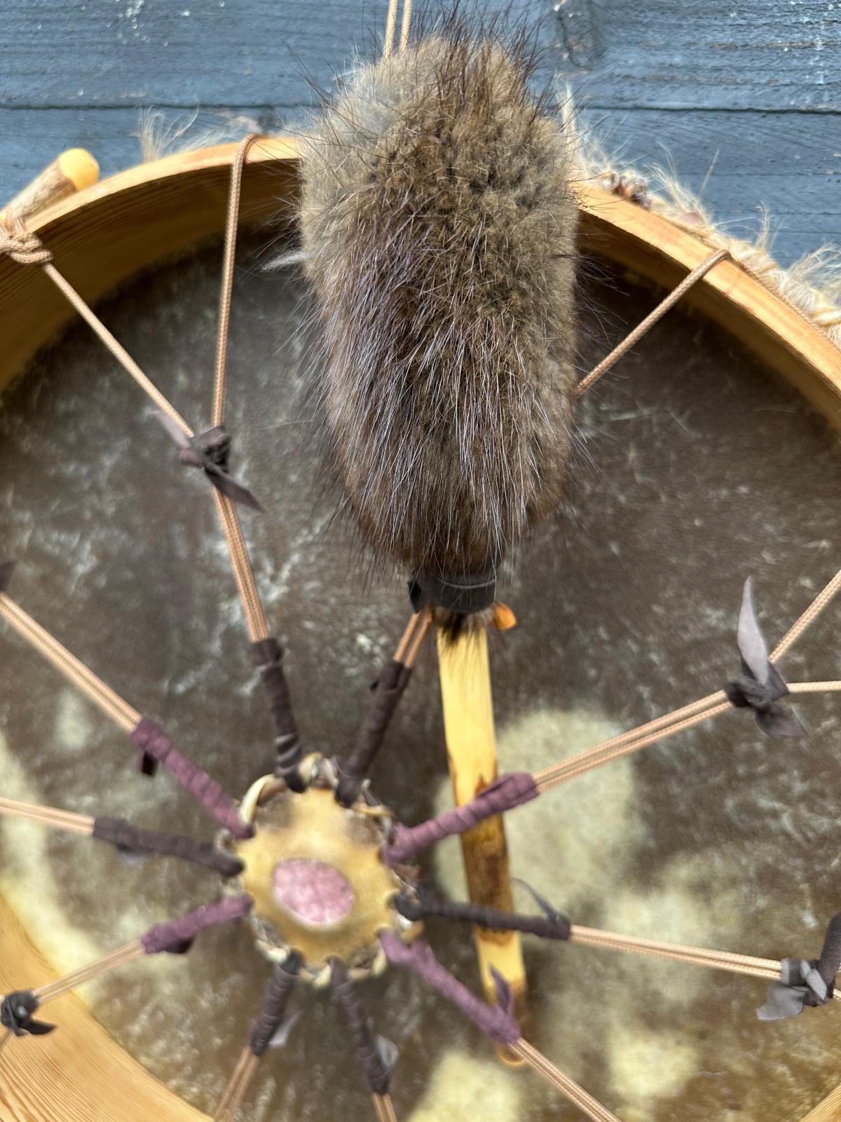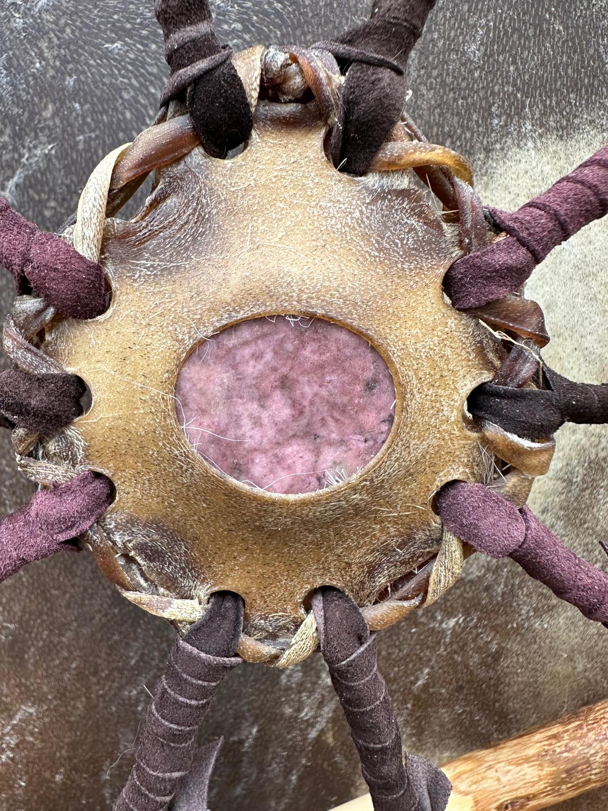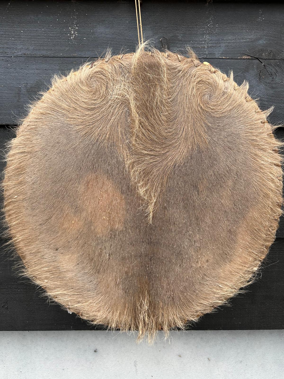 Deze sjamanendrum of sjamanentrommel is gemaakt met een huid van waterbuffel en van een dier wat een goed leven gehad heeft.