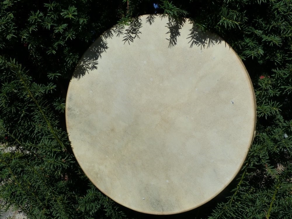 De gongdrum of framedrum heeft een houten frame wat bespannen is met natuurlijk geitenvel.