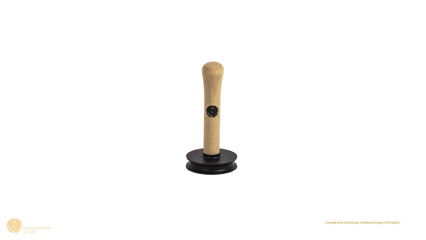 De zuignap moet stevig in het midden van de klankschaal worden gedrukt en aan de massief houten steel worden opgetild. Controleer vóór elk gebruik of het veilig vastzit. Houd geen klankschaal boven het gezicht of lichaam. Geschikt voor de meeste metalen klankschalen en het liefst met een effen binnenoppervlak.