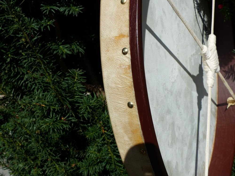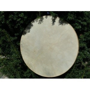De gongdrum of framedrum heeft een houten frame wat bespannen is met natuurlijk geitenvel.