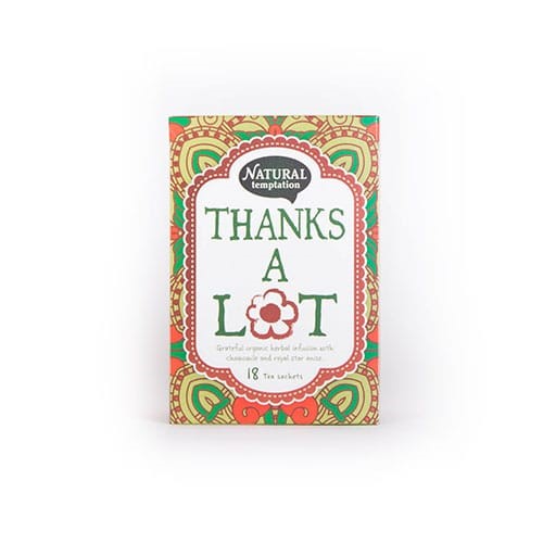 Thanks a lot thee is een dankbare biologische kruidenthee met kamille en Koninklijke steranijs. Een bijzondere kruidenthee om dankjewel mee te zeggen.