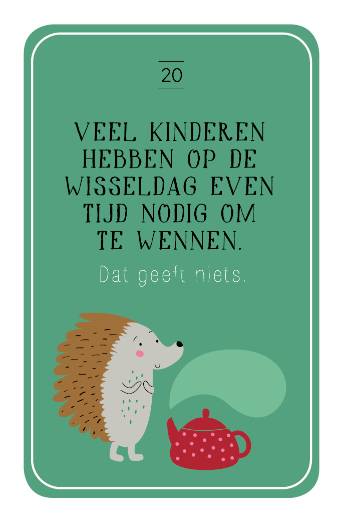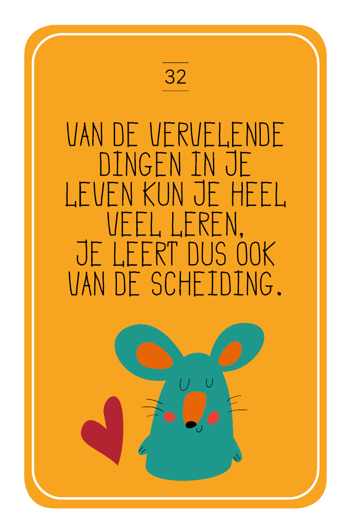 De kaartjes zijn een fijn hulpmiddel voor ouders en professionals om kinderen die een scheiding meemaken een extra steuntje in de rug te geven.