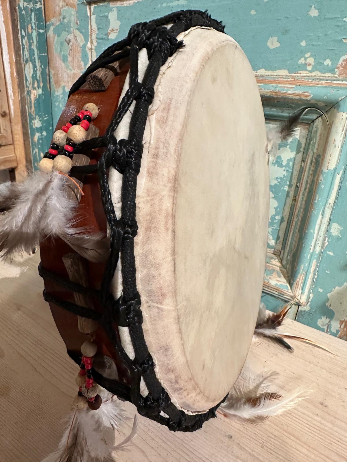 Een kleine sjamanistische ritueeldrum inclusief stok.