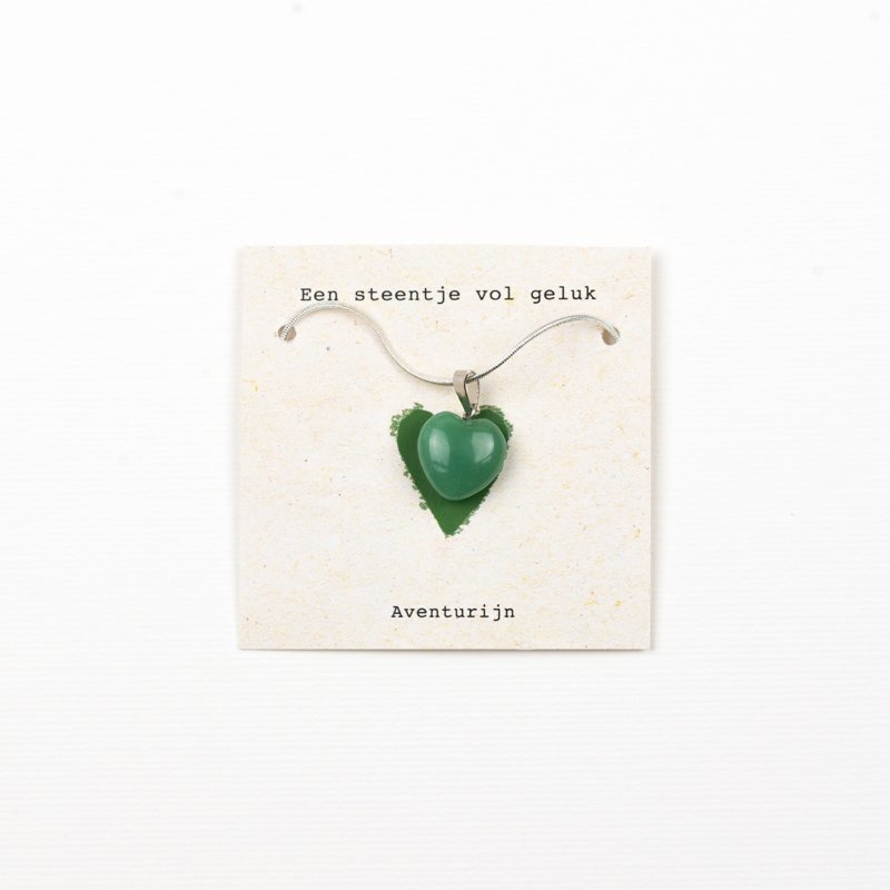 Bij de ketting zit een kaartje waarop staat: Een steentje vol geluk.