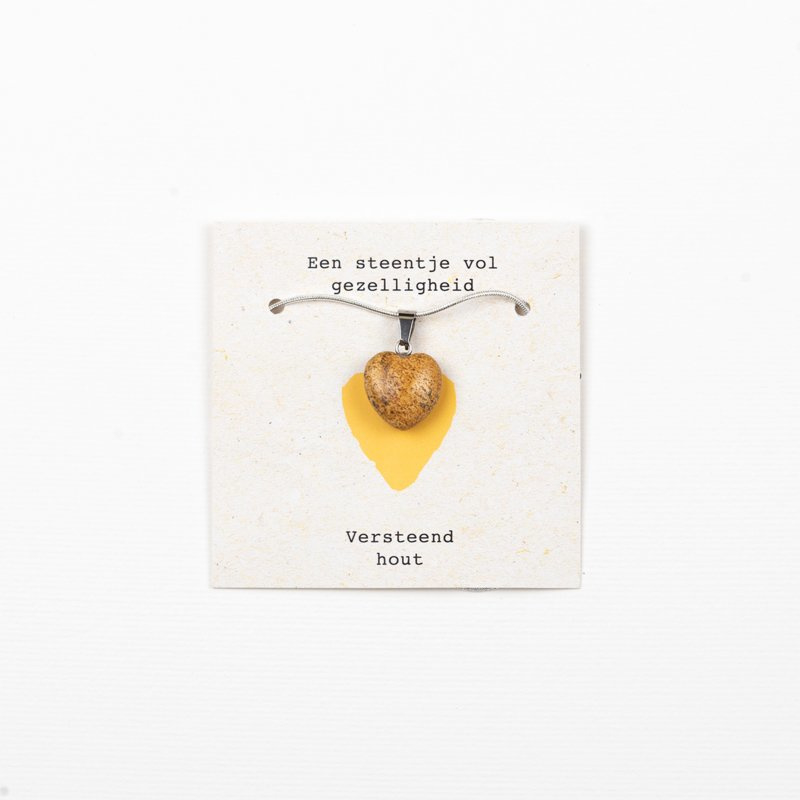 Ketting met hartje van Versteend hout.