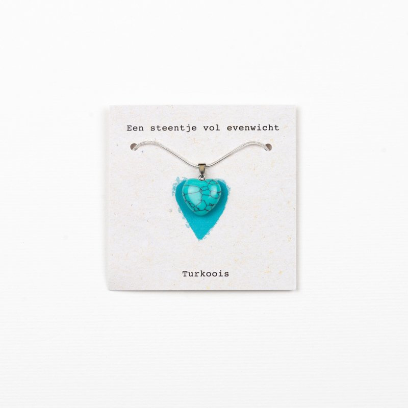 Bij de ketting zit een kaartje waarop staat: Een steentje vol evenwicht.