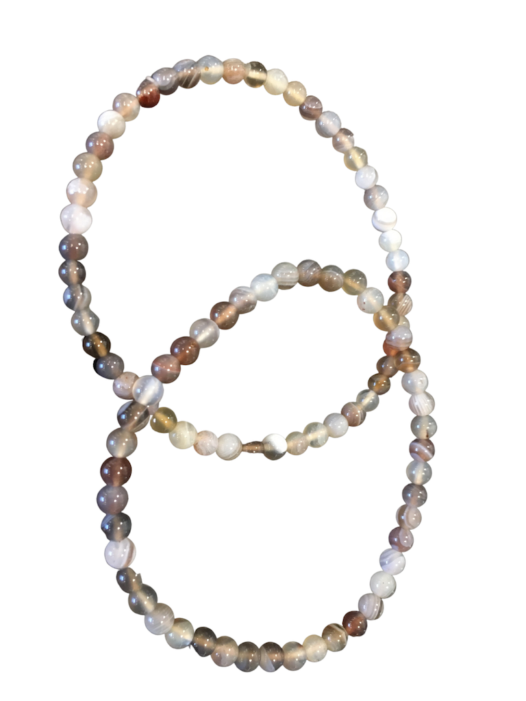 Edelsteen armband van agaat kraaltjes die ongeveer 4 mm groot zijn en geregen op elastiek.
