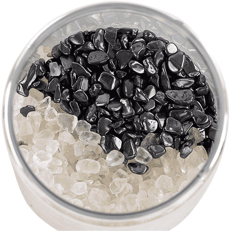 Leg het voorwerp dat je wilt reinigen en opladen bovenop de steentjes. Laat een nachtje liggen en het voorwerp is ontladen en opgeladen. Je kunt dit ongeveer een keer per maand herhalen.