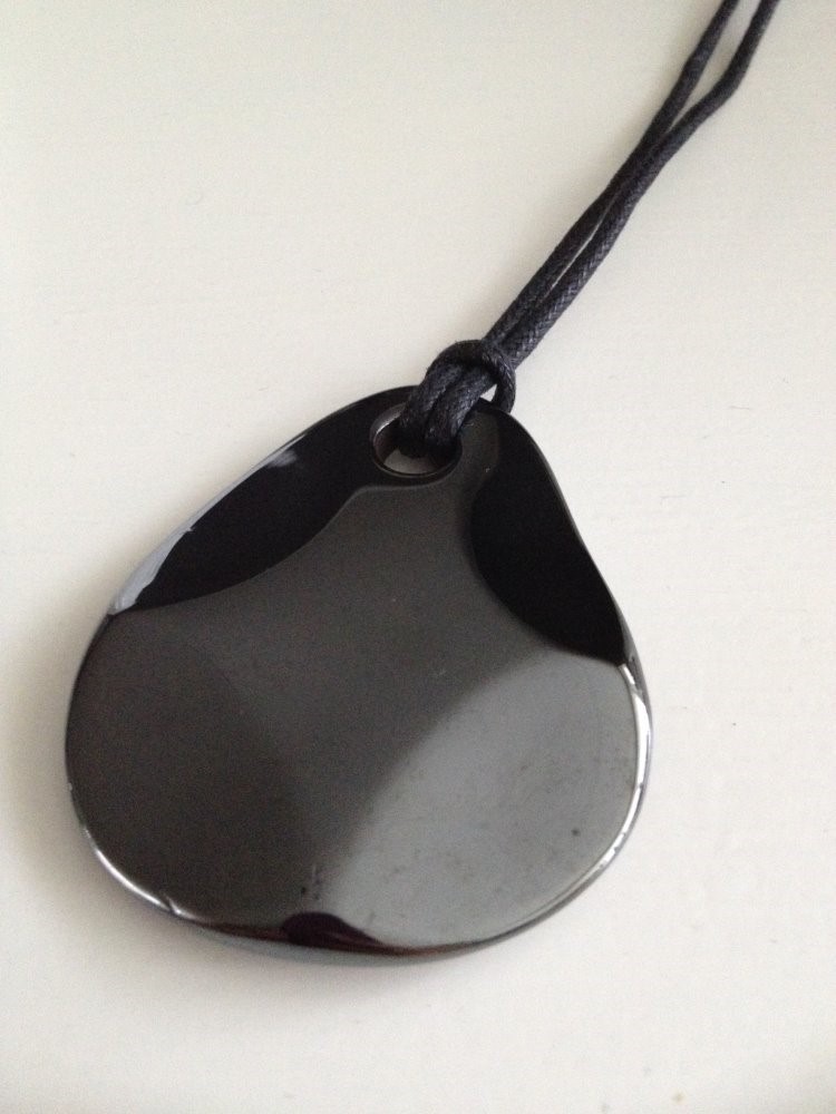 Quitarra hematiet hanger met waxkoord. Het waxkoord is voorzien van een verstelbare knoop waardoor je de lengte van de hanger zelf kunt bepalen.