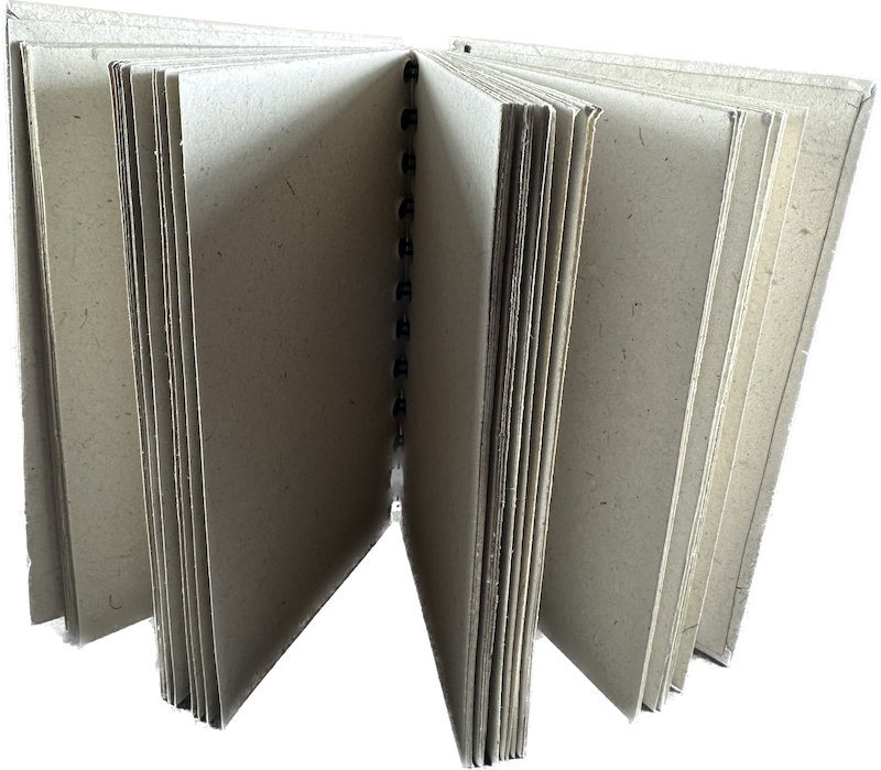 Er zitten ongeveer 50 bladen in een A6 notitieboekje en voorzien van een ringband.
