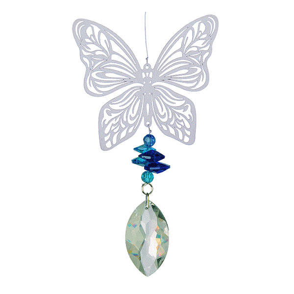 Suncatcher of Zonnekristal / Regenboogkristal met vlinder raamhanger.