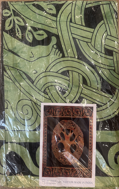 100% katoen wandkleed of bedsprei batik geverfd met de levensboom in de kleur groen.