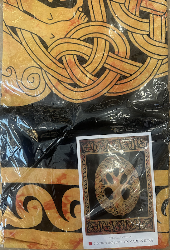 100% katoen wandkleed of bedsprei batik geverfd met de levensboom in de kleur oranje.