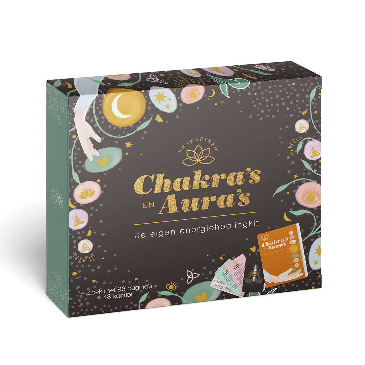 Verrijk je leven met goede vibes! Inzicht in je chakra’s en aura’s helpt bij het creëren van positieve gedachten voor lichamelijk en geestelijk welzijn. Deze luxe box staat in het teken van onze zeven chakra’s – het basis-, sacraal-, zonnevlecht-, hart-, keel-, derde-oog- en kruinchakra – en onze aura. Door inzicht in onszelf te krijgen kunnen we positieve energie uitstralen.