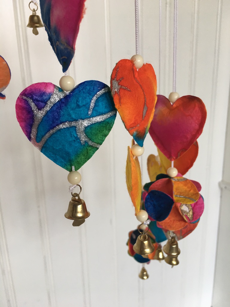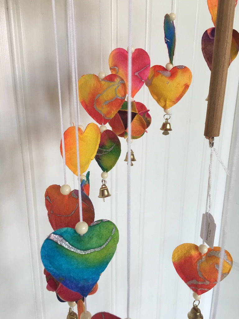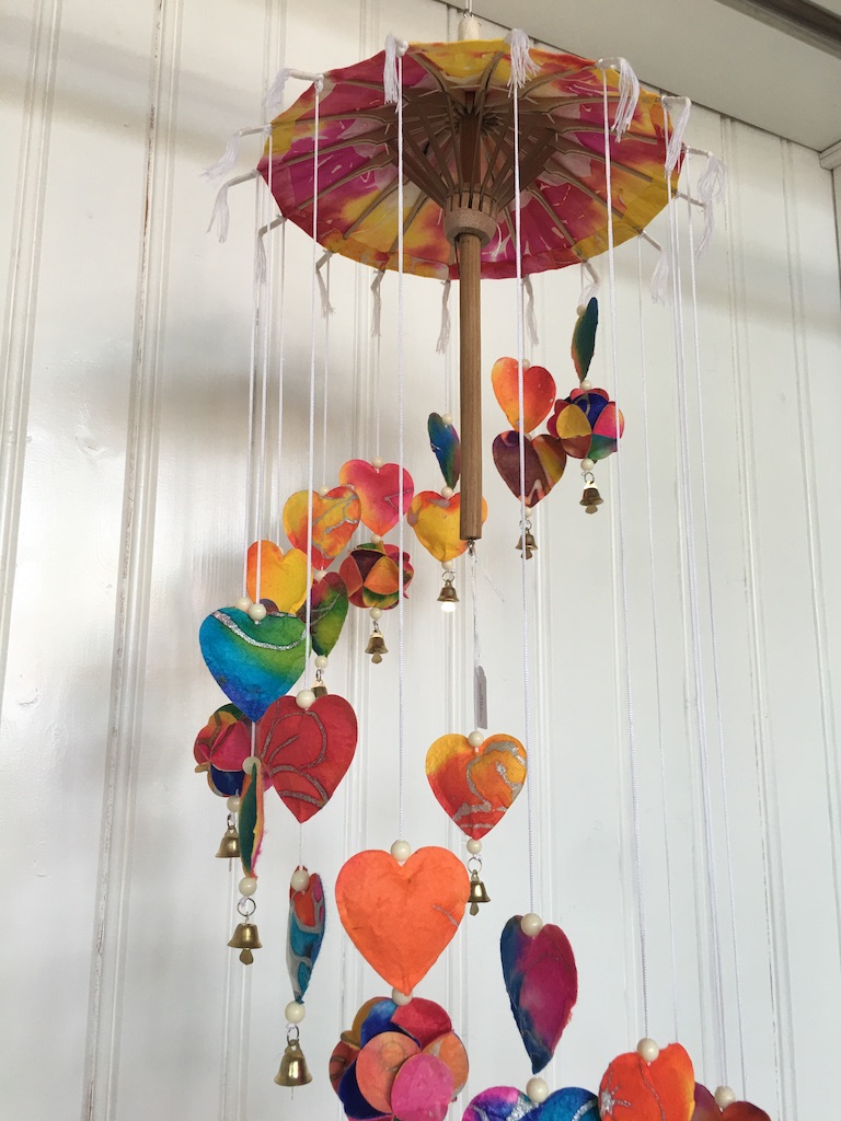 De balinese parasol mobile zijn er met hartjes, engeltjes, (vredes-)duiven en kerstmannen.