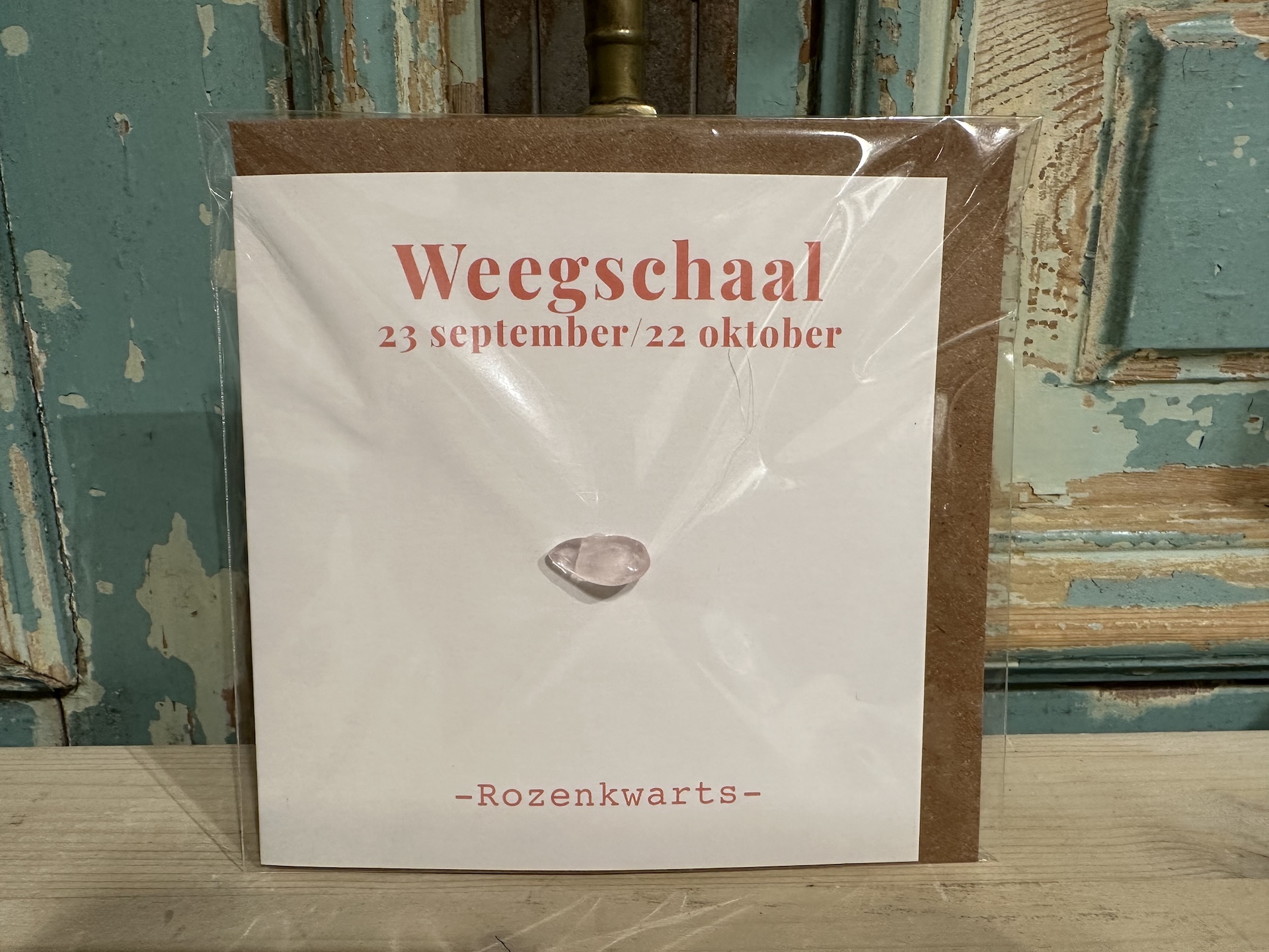 Dubbele wenskaart c.q. verjaardagskaart inclusief enveloppe met een echt edelsteentje van rozenkwarts.