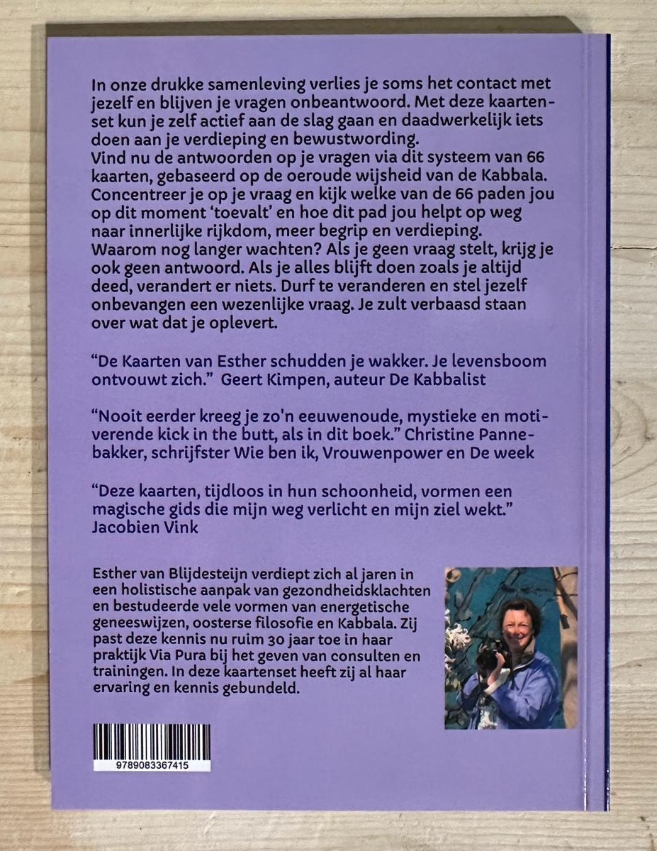 Esther van Blijdesteijn verdiept zich al jaren in een holistische aanpak van gezondheidsklachten en bestudeerde vele vormen van energetische geneeswijzen, osterse filosofie en Kabbala. In deze Levensboompaden kaartenzet heeft zij al haar ervaring en kennis gestopt.