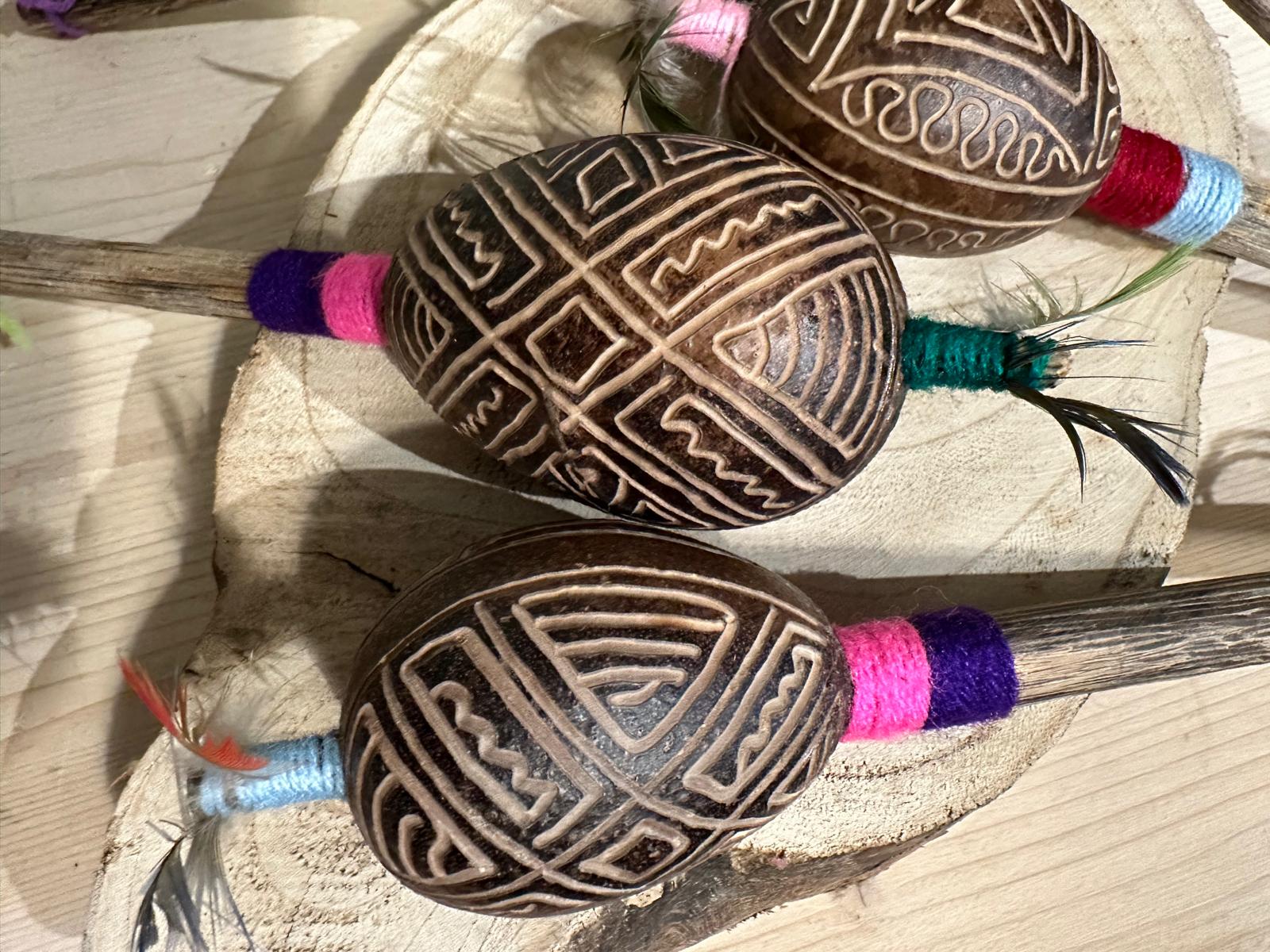 Deze uit Zuid Amerika afkomstige sjamanenratel heeft heel veel verschillende benamingen zoals; peruaanse ratel, maraca of maracca, wingo en shipibo.