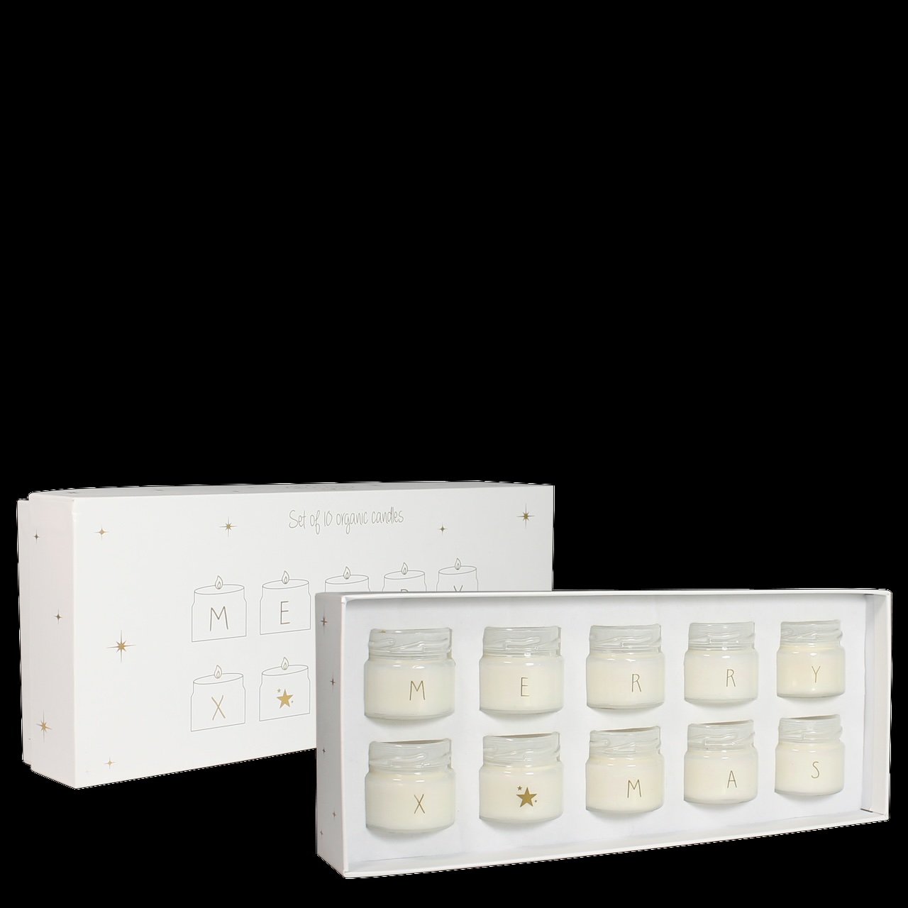 10 sojakaarsen in wit glazen potjes in geschenkverpakking - Merry X*Mass
