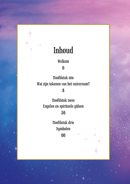 Engelengetallen, droombeelden en heilige geometrie... In dit boek ontdek je vele manieren waarop het universum probeert contact met je te maken en hoe je zijn unieke tekens kunt herkennen en interpreteren.