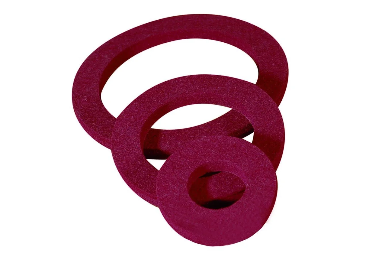 Vilten ring met een diameter van 12cm in de kleur donkerrood.