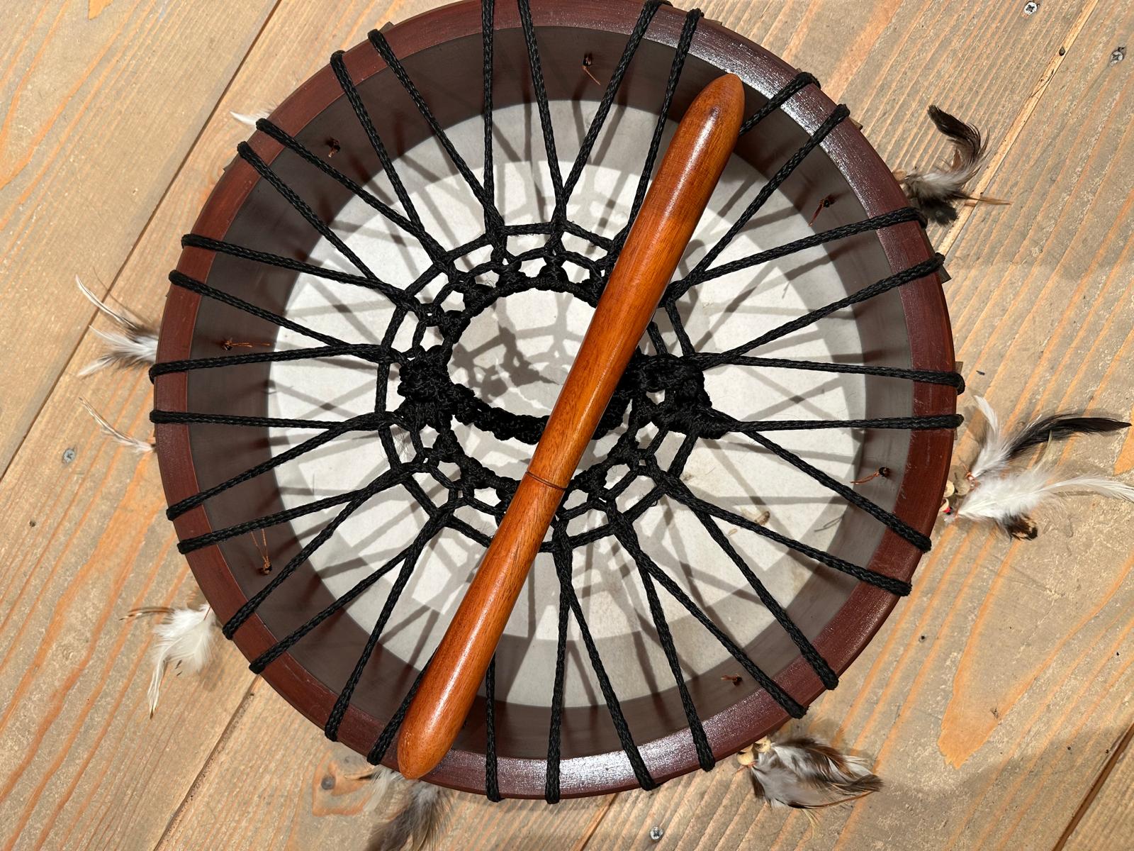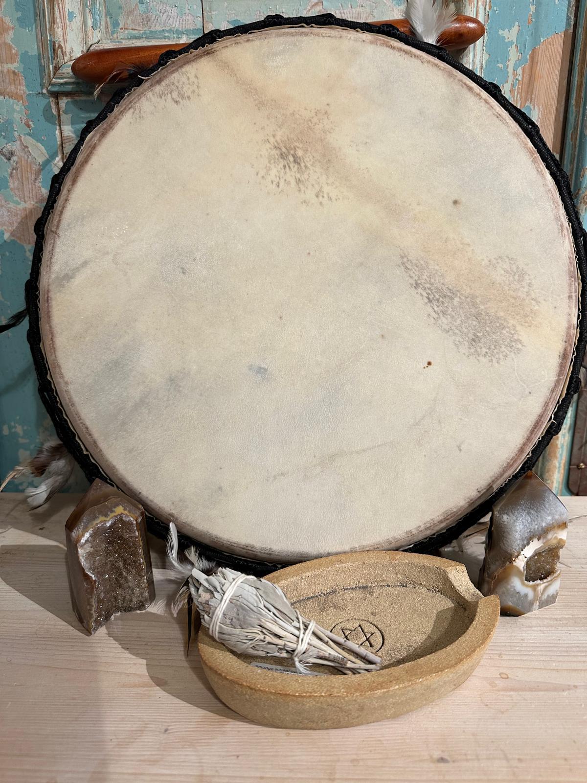Een sjamanistische ritueeldrum inclusief stok.