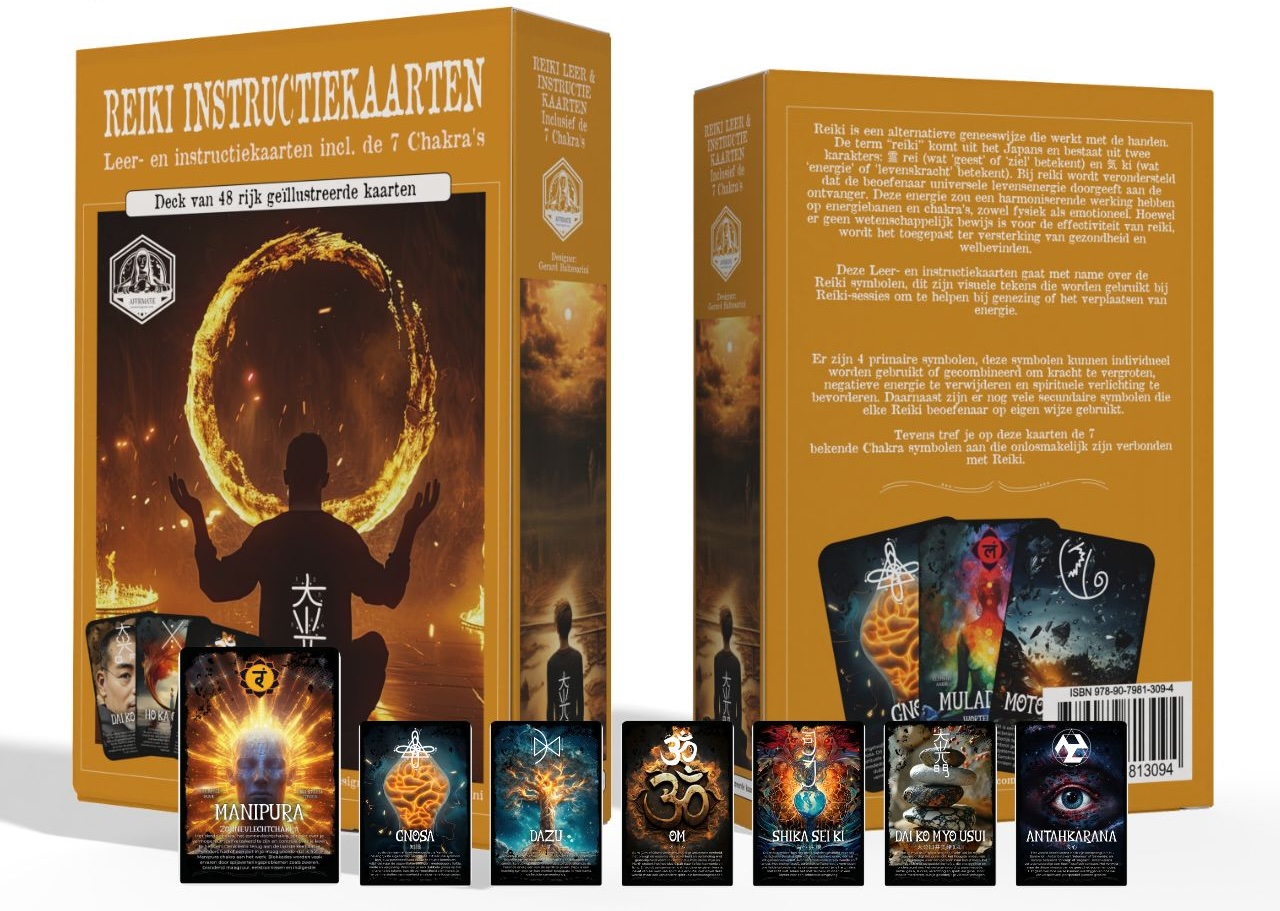 Deze leer- en instructiekaarten gaan met name over de Reiki symbolen. Dit zijn visuele tekens die worden gebruikt bij Reiki-sessie om te helpen bij genezing of het verplaatsen van energie.