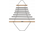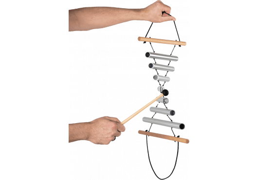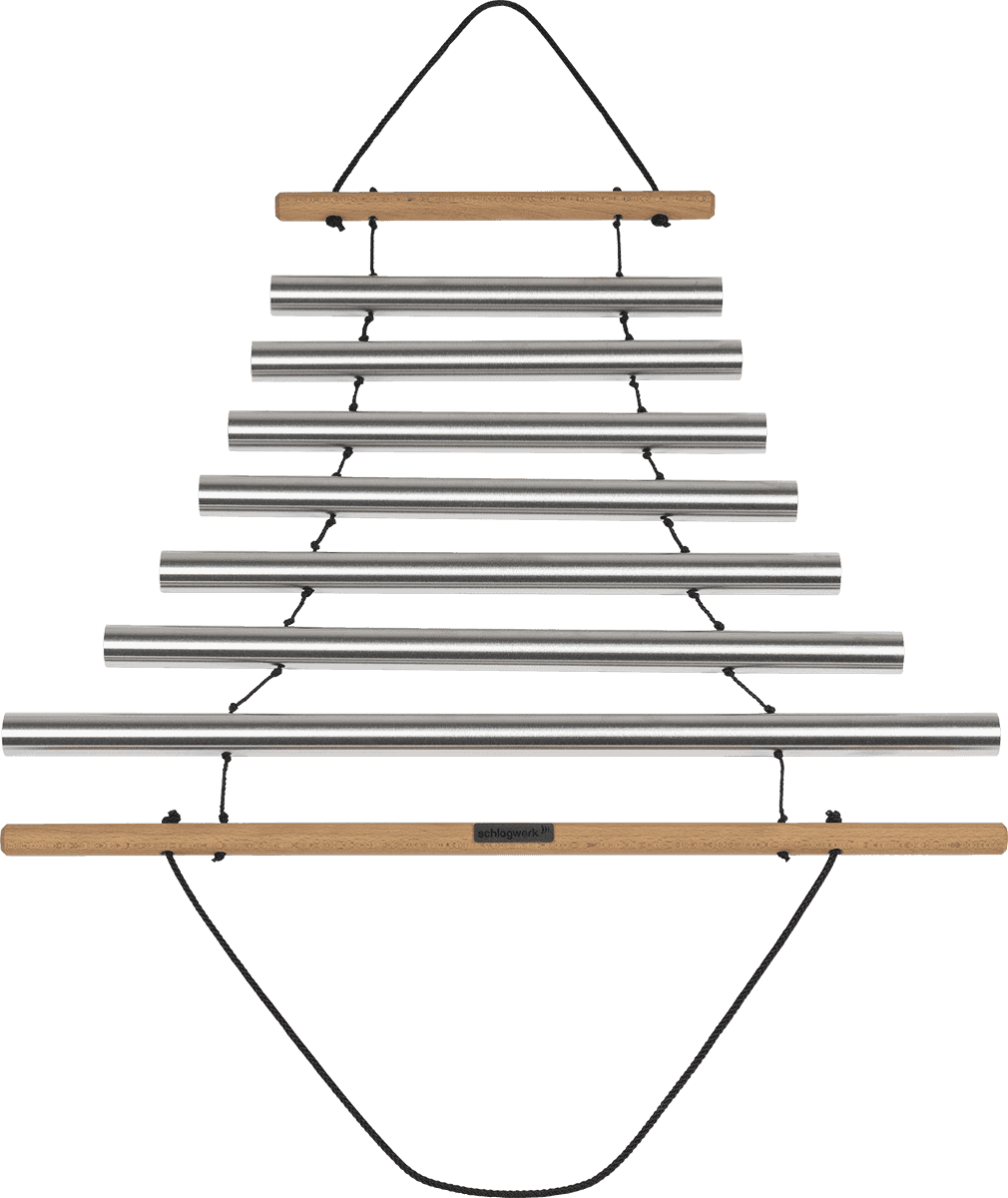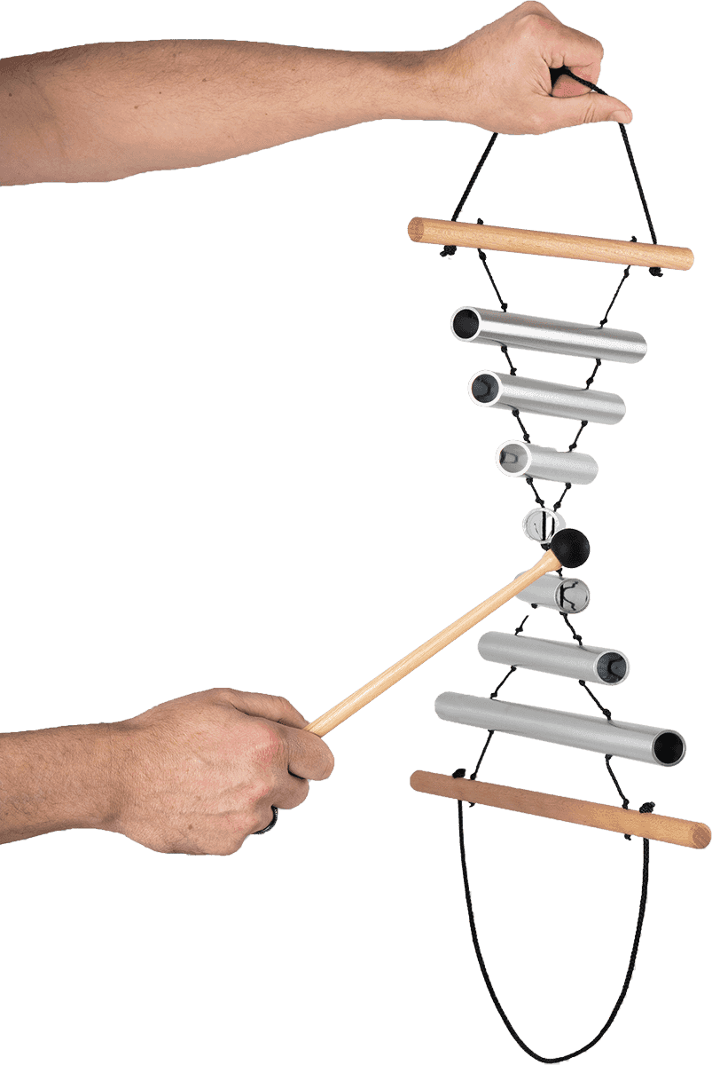 Door het hangende koord kunnen deze buizen vrij door de ruimte worden bewogen, bespeeld en gezwaaid. Dit vult zelfs een grotere ruimte met een prachtig, puur klanktapijt. Speciaal behandelde aluminium buizen en de handgeknoopte ophanging, samen met de nauwkeurige afstemming, geven een onvergelijkbare klank.