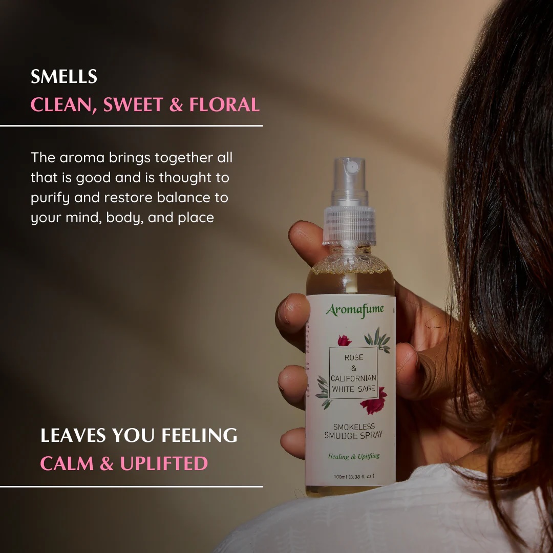 Aromafume's Witte Salie & Roos Smudge Spray bevat natuurlijke salie-extracten, harmonieus gemengd met roos, wat intimiteit en sensualiteit versterkt. Deze unieke combinatie is bedoeld om romantische gevoelens weer aan te wakkeren en positiviteit in de omgeving te brengen. Adem de rijke geur in en herstel de balans in je geest, lichaam en ziel.