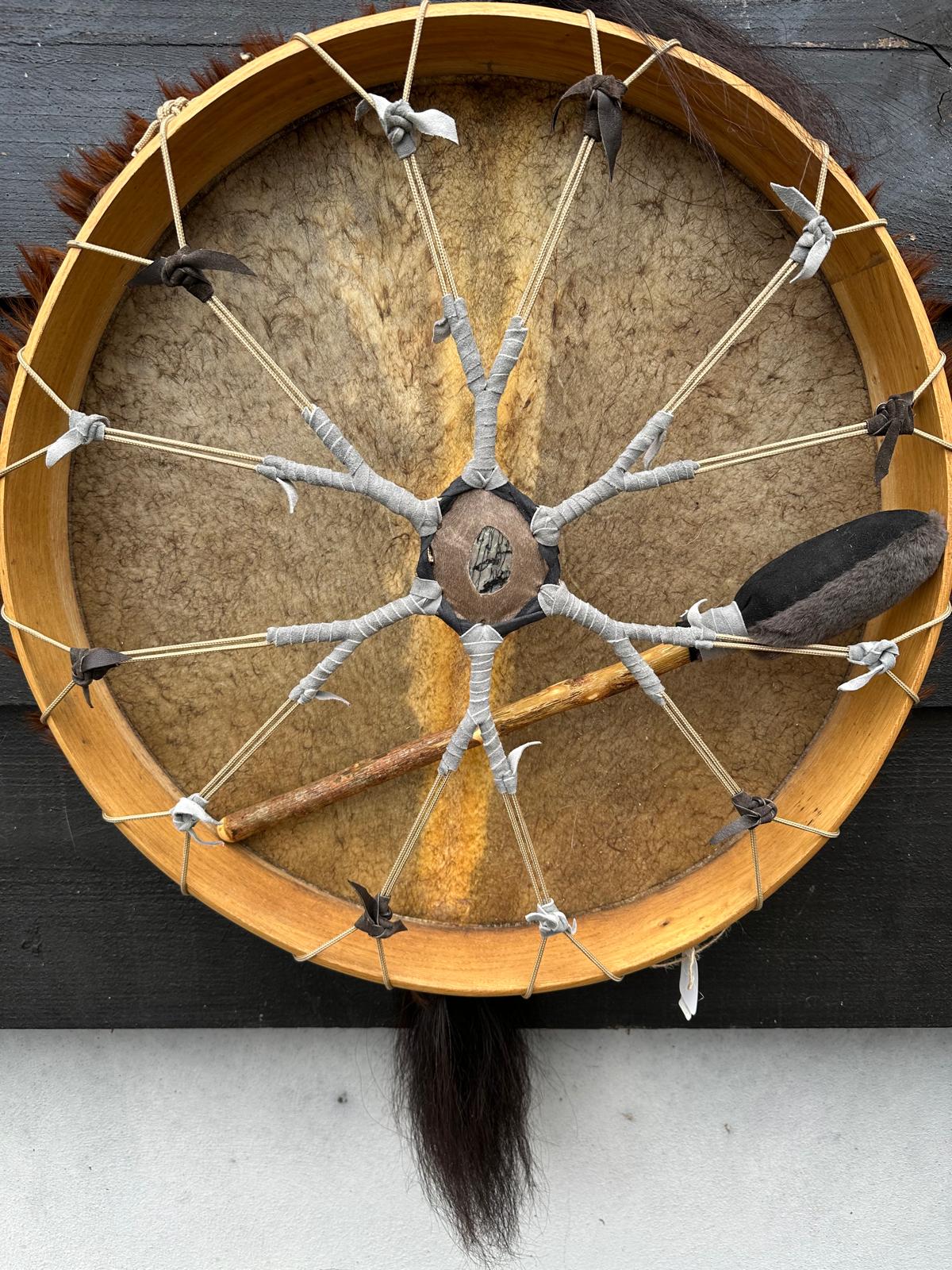 De sjamanendrum wordt geleverd met een gladde klopper.