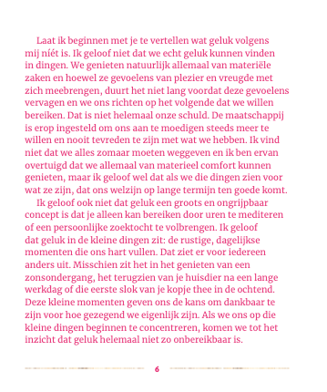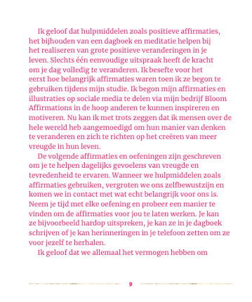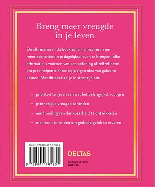 De affirmaties in dit boek zullen je inspireren om meer positiviteit in je dagelijkse leven te brengen. Elke affirmatie is voorzien van een oefening of zelfreflectie om je te helpen dichter bij je eigen idee van geluk te komen.