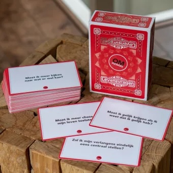 Deze Levensvragen kaarten zitten ook samen met de Dilemmakaarten in een prachtige set. Mét handleiding met daarin 11 unieke en ontregelende spelvormen die soms shockerende, verrassende of onthullende informatie over jezelf en je medespelers op zullen leveren.