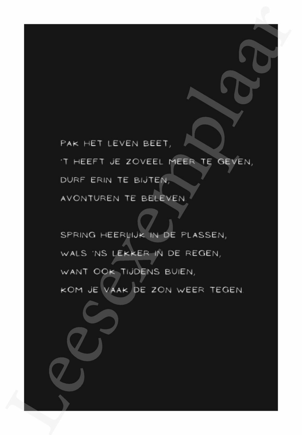 Herkenbare rijmwoorden die je zacht vertellen dat het oké is om te vallen, te twijfelen en bang te zijn. Maar ook om te dromen en te springen. Om te voelen. Te veel te voelen. Om met open ogen in de spiegel te kijken. Om fier te zijn op wat je doet. Op wie je was. En vooral op wie je nu – geworden – bent.