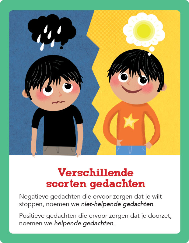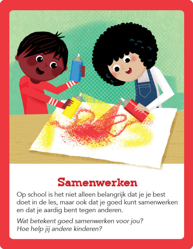 Deze gesprekskaarten, bedoeld voor kinderen in het basisonderwijs, geven onder andere uitleg over hoe je leert, wat je kunt doen wanneer iemand kritiek op je heeft en hoe je positief kunt leren denken.