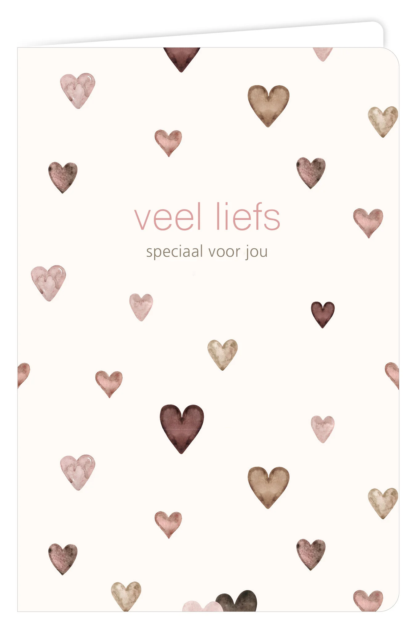 Dubbele wenskaart met de afbeelding van vele hartje en met de tekst 'veel liefs speciaal voor jou'.
