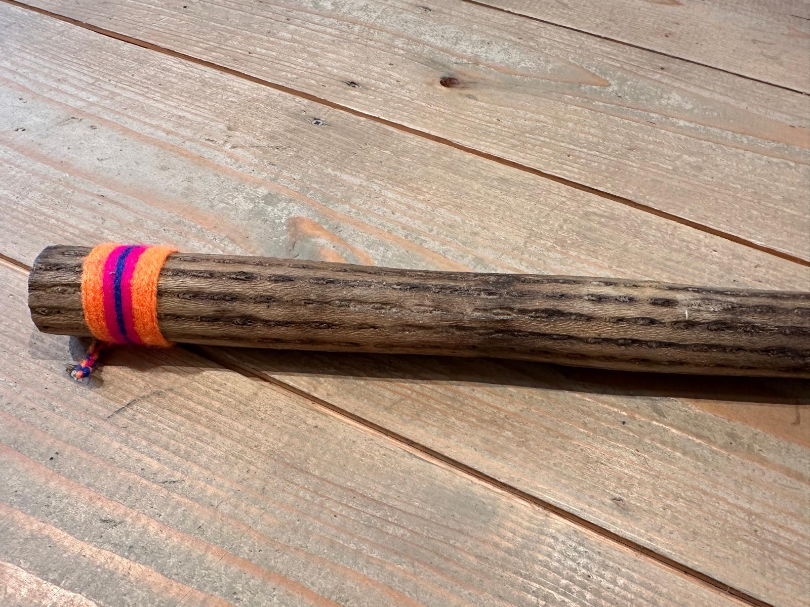 Houd de rainstick licht schuin en luister hoe het geluid van zachte regen zich langzaam ontvouwt.