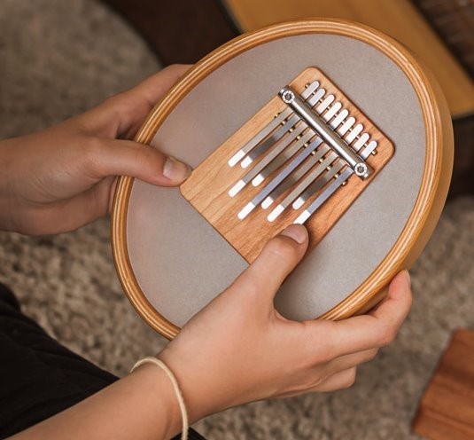 De firma Hokema maakt de Sansula Renaissance met een sterk kunststof vel en is gestemd in C, F, Eb, Bb, C, G, F, G en Eb.