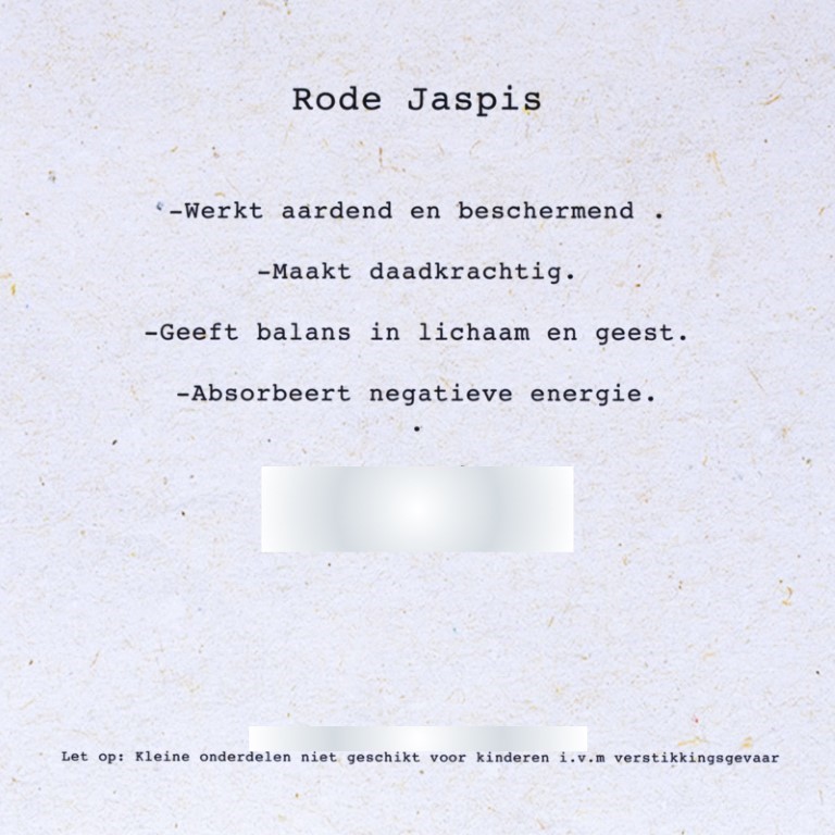 Aan de achterzijde staat vermeld waar Rode Jaspis voor staat.