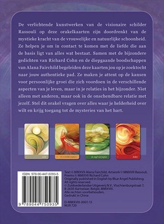 De verlichtende kunstwerken van de visionaire schilder Rassouli op deze orakelkaarten zijn doordrenkt van de mystieke kracht van de vrouwelijke en natuurlijke schoonheid.