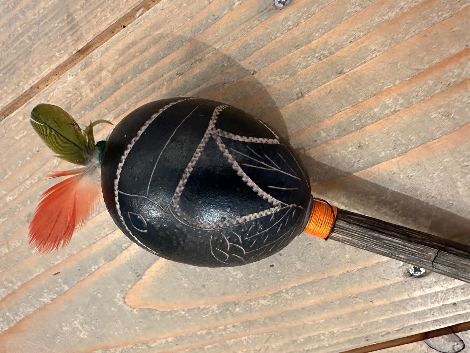 Deze sjamanistische ratel of shaker wordt ook vaak gebruikt bij klankbelevingen en klankontspanning ligconcert, maar is ook geschikt om in te zetten bij zintuig activatie in de gezondheidszorg. Wij gebruiken de ratel/shaker bij mensen met dementie en bij mensen met een verstandelijke beperking.