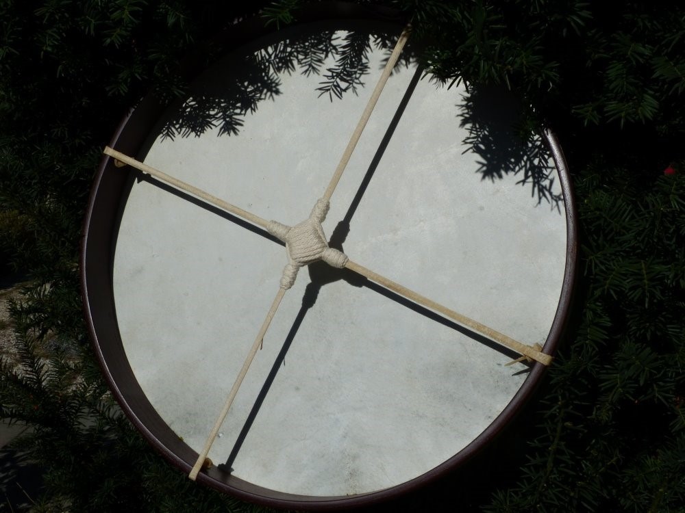 De gongdrum of framedrum heeft een houten frame wat bespannen is met natuurlijk geitenvel.