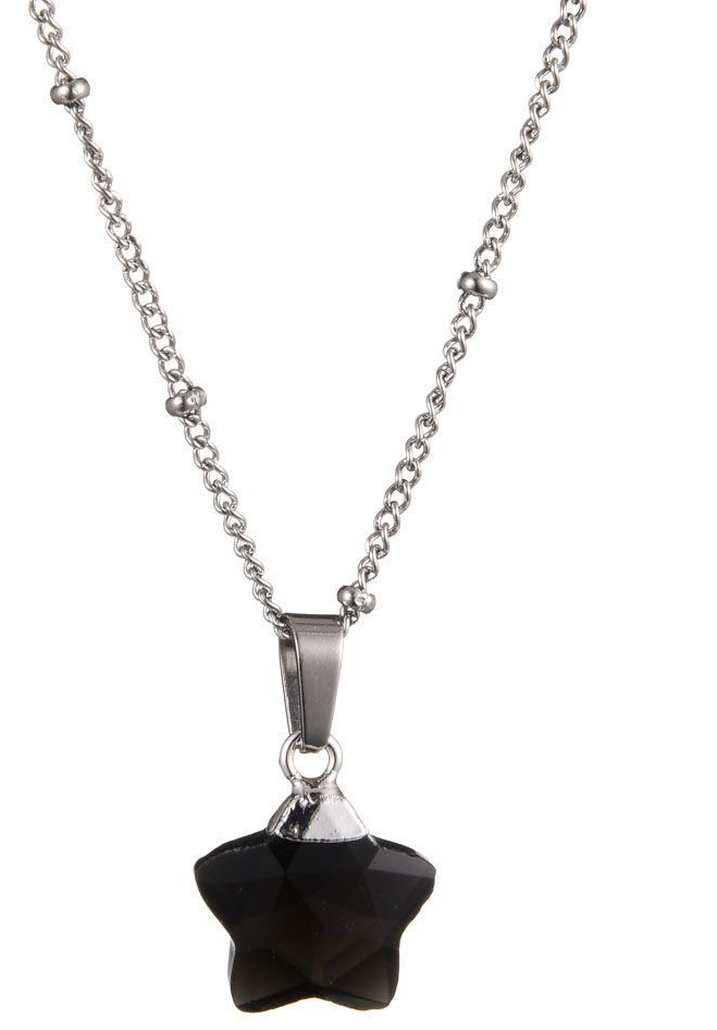 Het hangertje gemaakt van zwarte obsidiaan is ongeveer 12 mm groot en is in een stervorm.
