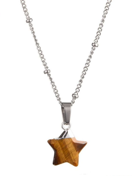 Het hangertje gemaakt van tijgeroog is ongeveer 12 mm groot en is in een stervorm.