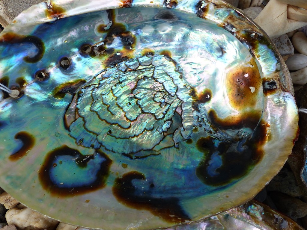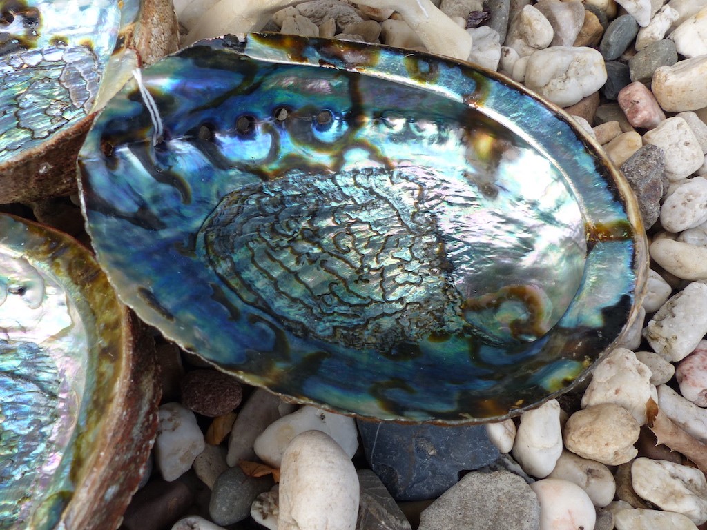 De regenboog Abaloneschelp wordt vaak gebruikt om Witte Salie of White Sage in te branden tijdens het smudgen.